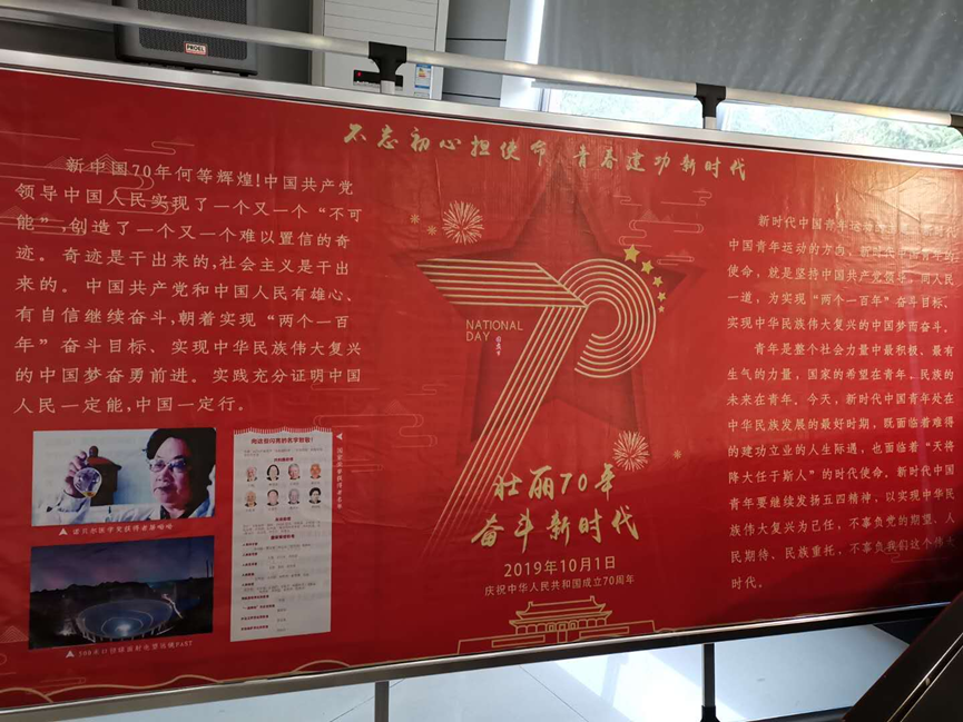 9月底,学院团学会制作庆祝中华人民共和国成立70周年展板,并于冶金馆301进行展示。内容包括中华人民共和国成立70周年的丰硕成果、共和国勋章获得者事迹、习近平总书记对青年学生的美好寄语。冶环学子通过学习展板内容,切身感受新中国成立70年来我国取得的历史性成就,增强爱国热情。