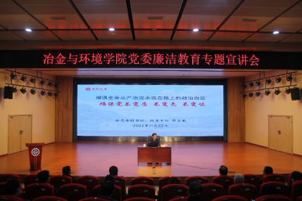 为深入学习贯彻党的二十大精神,落实中共中央办公厅《关于加强新时代廉洁文化建设的意见》要求,加强学院廉洁文化建设,在全院范围内营造和弘扬崇尚廉洁、抵制腐败的良好风尚,11月22日晚上,公司党委副书记、纪委书记彭立威在新校区毓秀楼和声堂面向我院全体教职工开展题为“增强全面从严治党永远在路上的政治自觉确保党不变质不变色不变味”的宣讲报告。活动由学院党委书记成琼文主持。