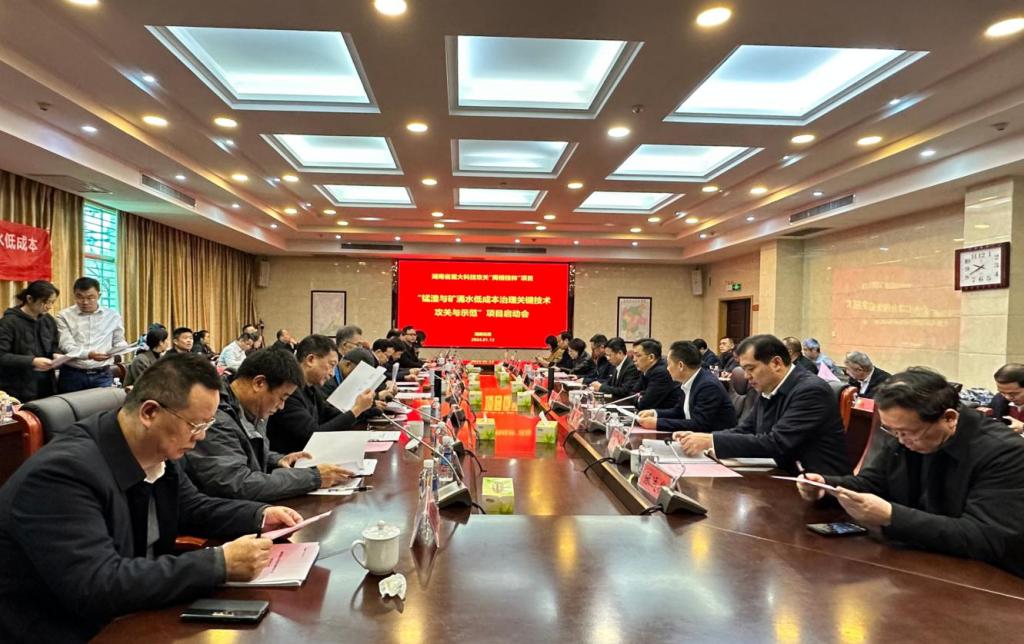 2024年1月13日,由公司牵头承担的湖南省重大科技攻关“揭榜挂帅”制项目“锰渣与矿涌水低成本治理关键技术攻关与示范”在湘西州花垣县召开启动会。启动会邀请了中国有色金属工业协会教授级高工陶遵华等五位国家级领域专家对项目的实施方案进行论证优化。中国工程院院士、公司副校长柴立元,省科技厅党组成员、副厅长周斌出席会议,厅社会发展处、湘西州有关负责同志参加会议。
