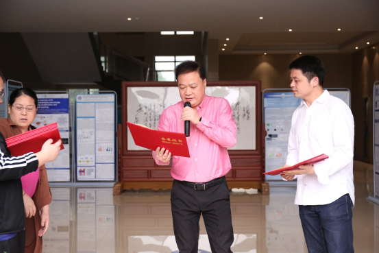公司约350名师生在活动会场自由观看、交流讨论,人群川流不息,讨论气氛热烈,大家纷纷在感兴趣的海报前驻足观看,或扶额沉思,或提问请教,或分享经验,或拍照留取科研灵感,整个会场弥漫着浓烈的学术氛围。投票通道同步开启。学生们守候在自己的墙报附近,师生们依次观看海报,与海报制作者进行热烈地交流。展会从290名参展者中评选出一等奖4名、二等奖8名和三等奖12名,并颁发荣誉证书和奖品。