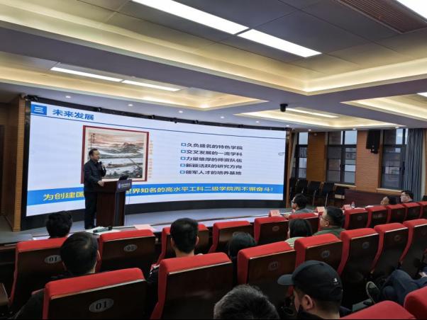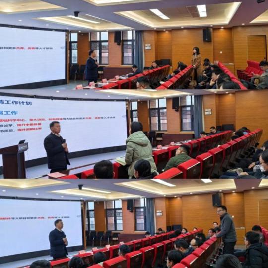 随后,刘恢副院长做了2023年度学院科研工作总结暨2024年度工作安排。在对学院科技创新现状进行了深入探讨和思考的基础上,围绕高质量论文、科技奖励、高水平人才、重大项目等方面提出了24年的目标与规划,并希望青年教师作为科研生力军在踏实科研的过程中也应多抬头看路,积极学习国家科技政策,抓住机会,借力发展。