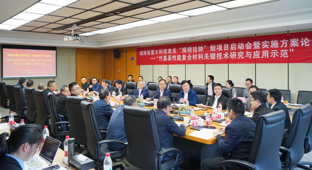 2024年4月7日,由我院郭学益教授作为项目负责人,公司牵头承担的湖南省重大科技攻关“揭榜挂帅”制项目“竹基高性能复合材料关键技术研究与应用示范”项目启动会暨实施方案论证会在长沙召开。