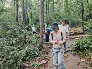 党日活动以"沉浸式红色教育"为主线。下午4时,队伍身着素色运动装,手持环保垃圾袋,沿岳麓山径蜿蜒而上。当队伍攀越陡峭石阶时,宣传委员唐施阳适时引导:"当年红军翻越夹金山时,脚下是冰窟窿,肩上是伤员,而我们今天轻装前行,都感觉十分艰难,先辈们'革命理想高于天'的信念力量,令人震撼。" 行至第九战区司令部遗址,流水潺潺与远处爱晚亭的人声鼎沸形成鲜明对比。大家略感疲惫,在此处暂歇。党支部书记胡寒结合此处的浮雕碑文,讲起了三次长沙会战的悲壮,讲起了毛泽东、何叔衡等先辈在爱晚亭的救国讨论,大家深受教育。