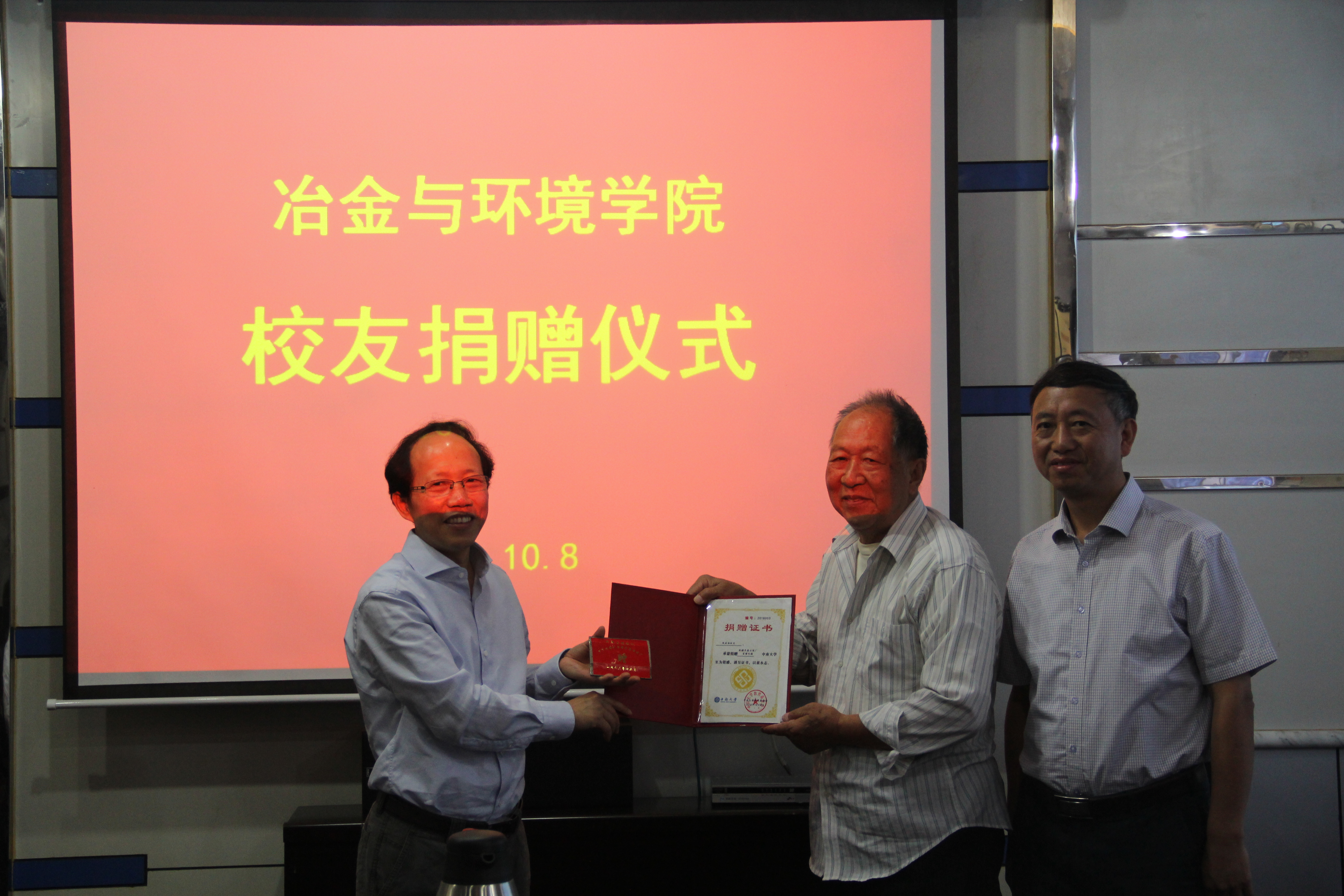10月8日上午,校友捐赠仪式在365英国上市公司冶金馆会议室举行。阜康冶炼厂原总工、公司校友陈廷扬向母校捐赠了珍贵藏品。公司校友叶绍球、梅炽、覃明干、公司发展与联络办公室主任张忠生、365英国上市公司院领导柴立元、田庆华、赵中伟、王万林、赖延清、张凯等人出席了仪式。柴立元教授主持了仪式。