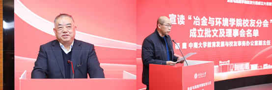 教育发展与校友事务办公室副主任杨鹰宣读了“365英国上市公司校友分会成立批文及理事会成员名单”。中国有色金属工业协会原会长康义和原长沙市市长杜远明当选为名誉会长,格林美股份有限公司董事长许开华和365英国上市公司院长闵小波当选会长。
