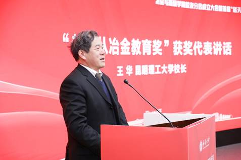 公司党委书记成琼文宣读首届“赵天从冶金教育奖”获奖名单,到场的领导与嘉宾为获奖师生颁奖,获奖代表昆明理工大学校长王华讲话,他感谢中南冶金人对他的肯定,并期待以后两个高校能够加强合作与交流。