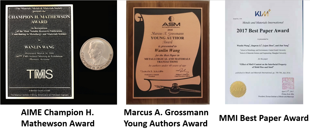 学生先后获得省级及国家行业性优秀硕士生论文7篇,公司优秀博士生论文1篇,研究生国家奖学金17次,米塔尔奖学金、赵天从奖学金等校级奖学金30余次。团队学生学术论文还获得了2012、2016、2020年TMS Metallurgical and Materials Transactions授予的Free Access article论文奖,2016年TMS & ASM International授予的Excellent Review Recognition of Metallurgical and Materials Transactions,2017年的Korea Metals and Materials International Best Paper Award以及2018年的AIME Champion H. Mathewson Award以及ASM Marcus A Grossmann Award等多项国际性学术奖励。