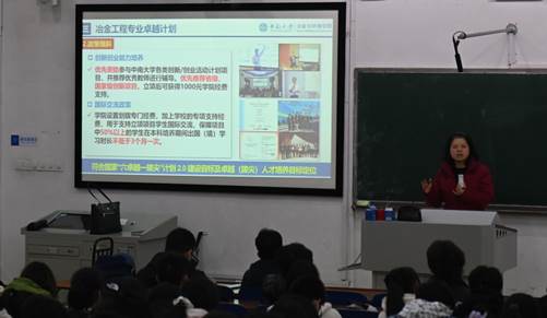 会议伊始,陈爱良副院长从学院的基本情况、卓越工程师计划、冶金工程专业卓越计划方案、报名指导四个方面详细介绍了冶金工程专业卓越班的相关情况,并指出班级的资源优势和培养优势,强调了冶金工程卓越班学生的发展前景,让在座的同学心生向往。